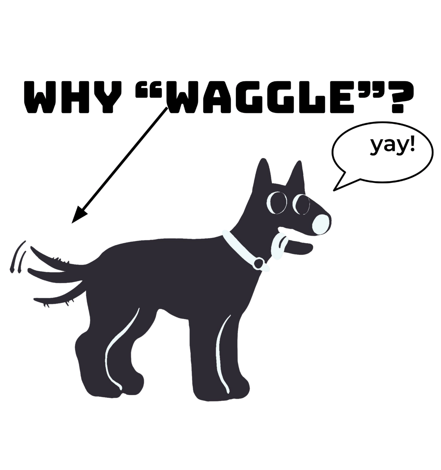 Waggle references a dog tail “wagging” as a reaction to anything that makes them happy; their human, yummy food, or a walk!